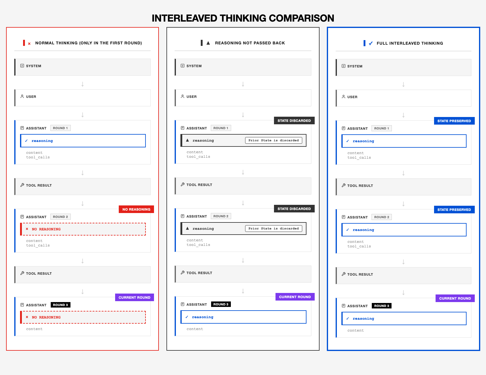 content字段会包含<think>标签内容,需要完整保留 - 在 Interleaved Thinking 友好格式中,通过启用额外的参数(