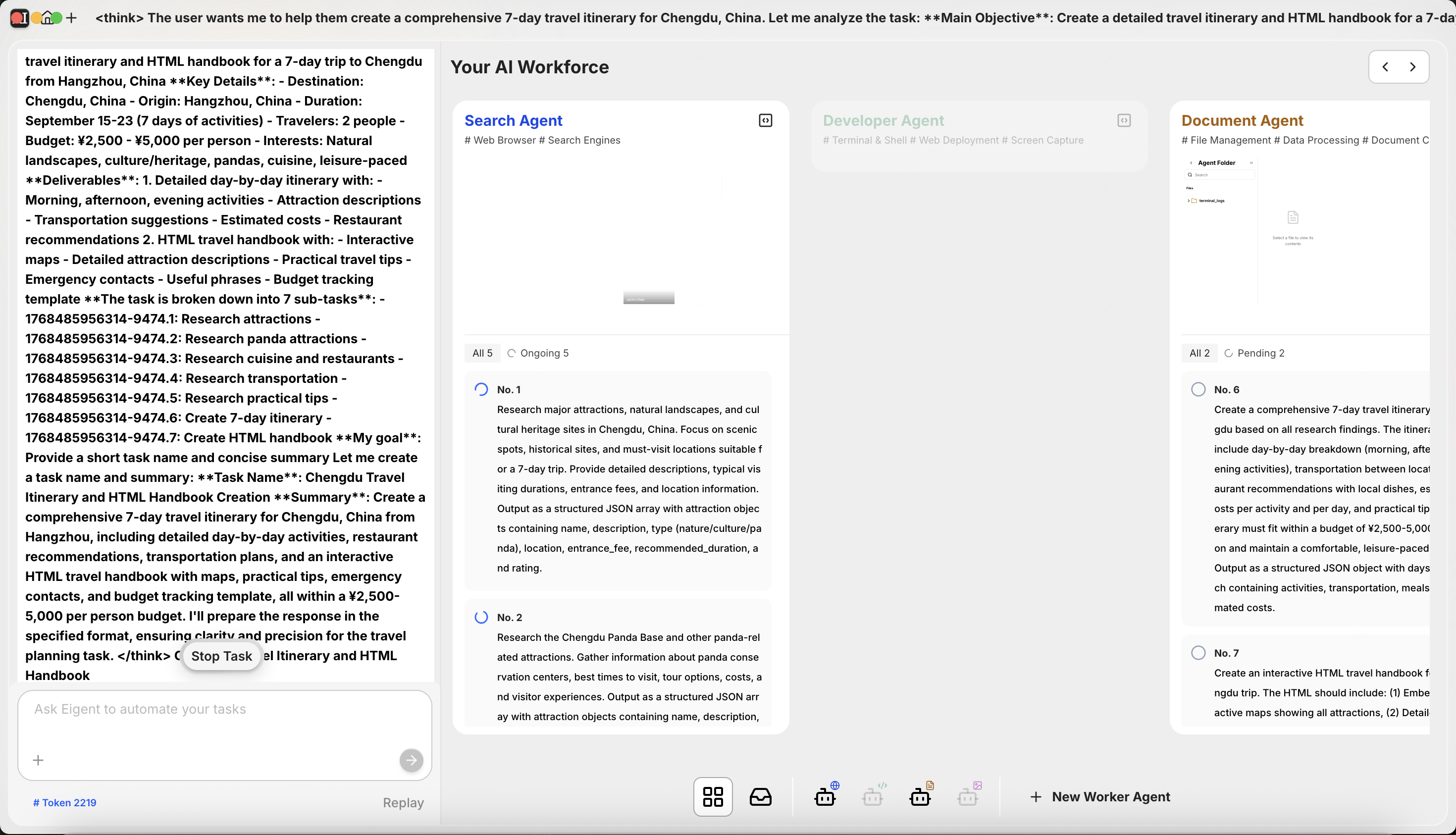通过本教程,我们展示了如何在 Eigent 多智能体框架中接入 MiniMax M2.1 模型,并完成复杂任务:- MiniMax M2.1 的 thinking 能力使其能够自主规划复杂任务的执行步骤