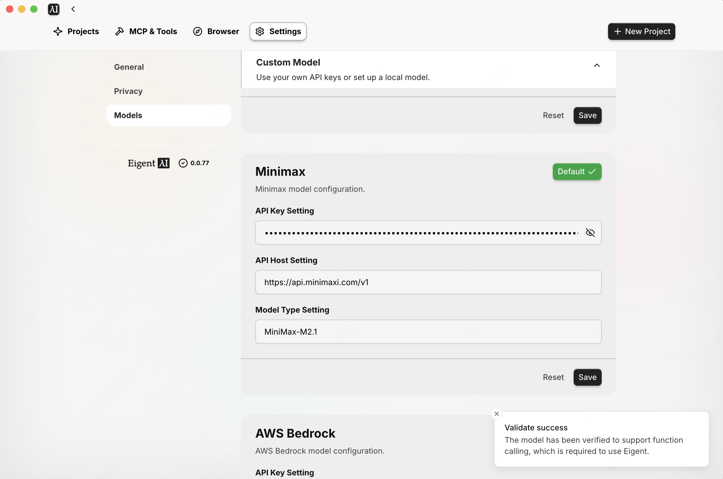 | Model Type Setting | MiniMax-M2.1 |