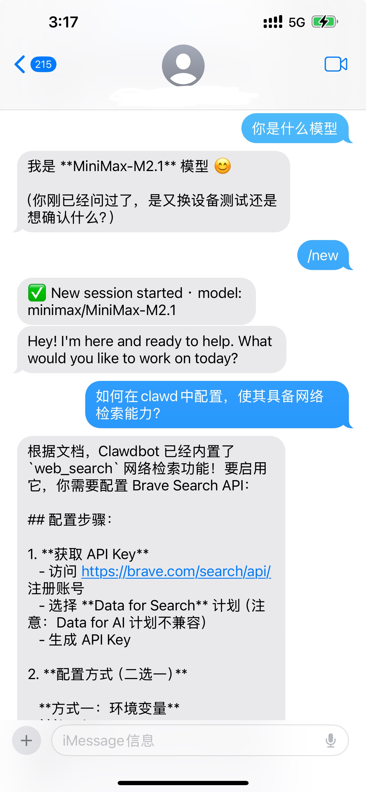 配对完成后,您就可以通过 iMessage 与 MiniMax M2.1 驱动的 AI 助手进行对话了!